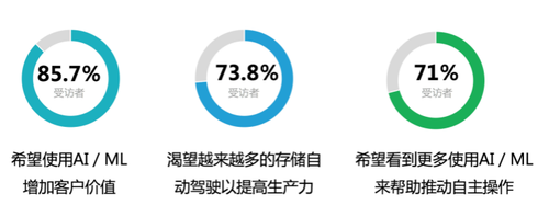 全球的用户也期待着拥有智能化管理的存储产品。IDC在2018年6月完成了一项全球存储用户的智能化特性调查,用户对使用AI / ML算法推动存储系统的改进抱以积极的态度。