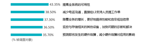 同时,IDC还调研了已经使用了存储智能运维技术(AIOps)的用户,询问他们从中得到了哪些好处。图3展示了用户目前最关心的五项智能服务。其中,排第一的AIOps用途是改善系统的整体可用性,其次是加快问题解决速度及提高性能容量规划,预测性地识别任何即将发生的故障,监视与存储相关的其他IT基础架构也被用户重点关注。整体来说,存储智能运维技术(AIOps)在整个的市场和发展趋势是非常好的,对于用户来说,用户期待借助存储智能运维技术(AIOps)来解决日常手段或者现有方法不能解决的存储管理问题。