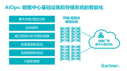 权威IT调研与咨询服务公司Gartner也在持续关注存储智能化的发展,并给出了AIOps(Artificial Intelligence IT Operations)的定义: AIOps利用大数据和AI技术增强IT管理和运维的能力,包括:可用性和性能监测、事件关联和分析、IT服务管理和自动化。