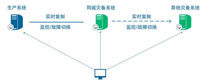 自营资管系统为证券行业一个关键应用,常用为Window+MSSQL或者Linux+Oracle,通过英方软件进行应用保护可以实现异地机房数据库的远距离实时同步和两地三中心的灾备保护。 两地三中心的灾备保护